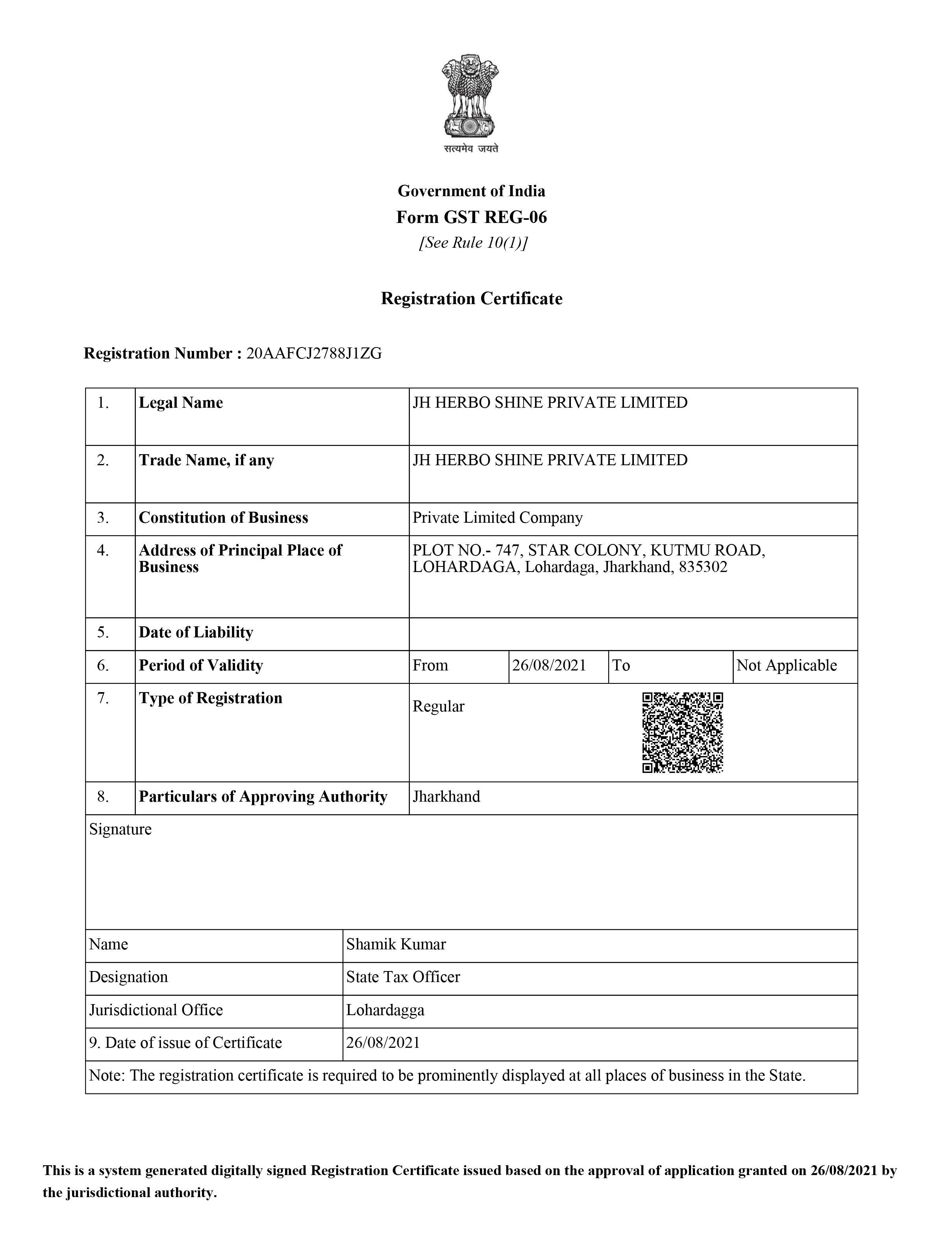 Certificate Of GST